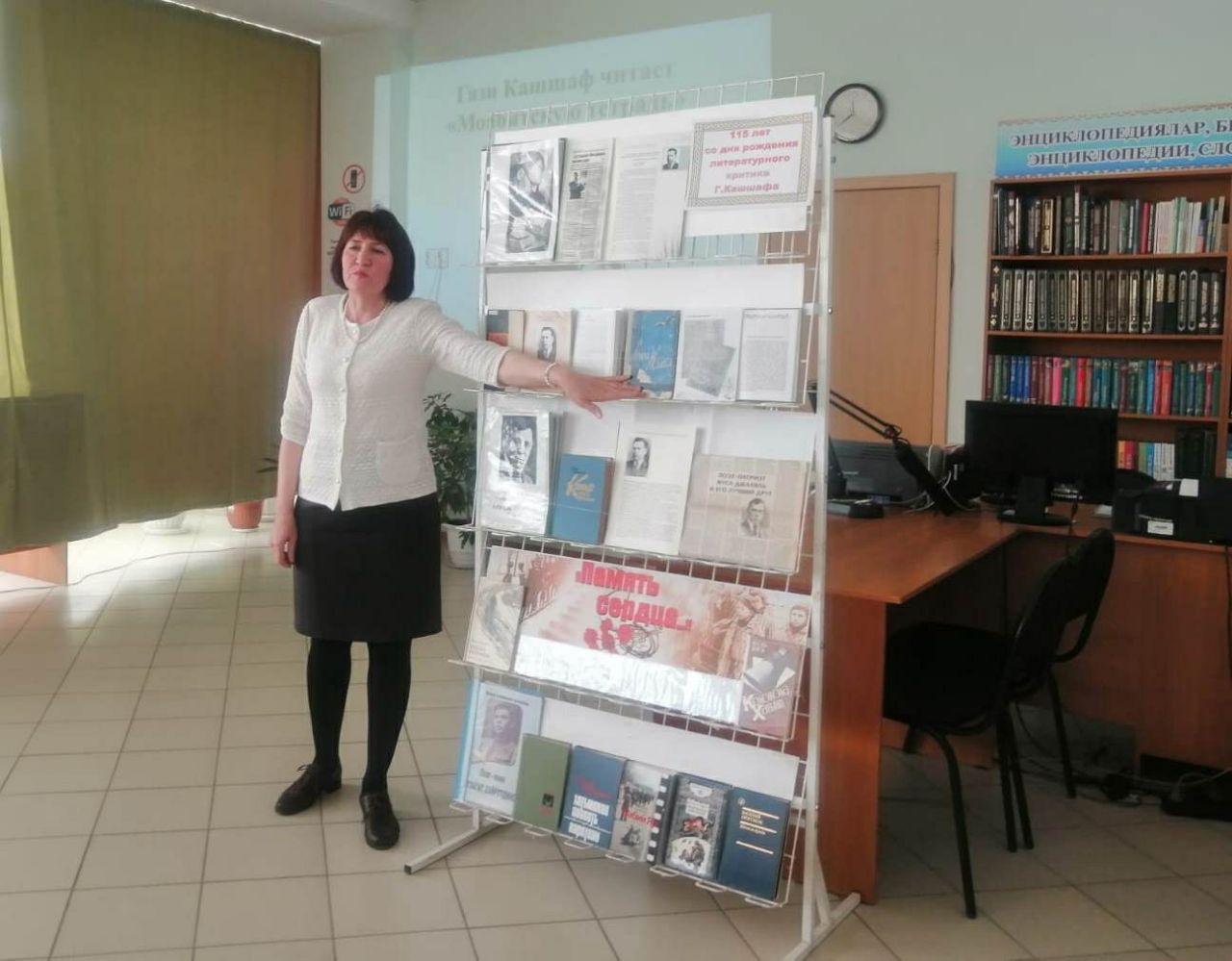 Сегодня в нашей библиотеке для учащихся 9 «В» класса школы №7 состоялось литературное досье «Прометей татарского народа» («Татар халкының Прометее»), к 115- летию земляка, литературного критика Гази Кашшафа. Библиотекарь рассказала школьникам о том, что наш земляк Гази Кашшаф посвятил свое творчество литературной критике, развитию татарской литературы и журналистики. Более трехсот его работ за этот период были опубликованы на страницах периодической печати, в сборниках. Далее подробнее остановились на периоде жизни Г.Кашшафа, когда он занимался восстановлением, в послевоенное время, честного имени известного татарского писателя Мусы Джалиля, казненного фашистами на гильотине в тюрьме Плётцензее в 1944 году. Вспомнили о трагических событиях, происходивших в лагерях смерти, посмотрели видеоролики: «Саласпилс»,«Воспоминания бывшего узника концлагеря Бухенвальд». Вкратце ознакомились с трагической судьбой нашего земляка, поэта-воина Музагита Хайрутдинова, которого фашисты расстреляли в концлагере Дахау. В завершении литературного досье послушали аудиозапись стихотворения Мусы Джалиля «Варварство».Также провели обзор книг, представленных на книжной выставке.