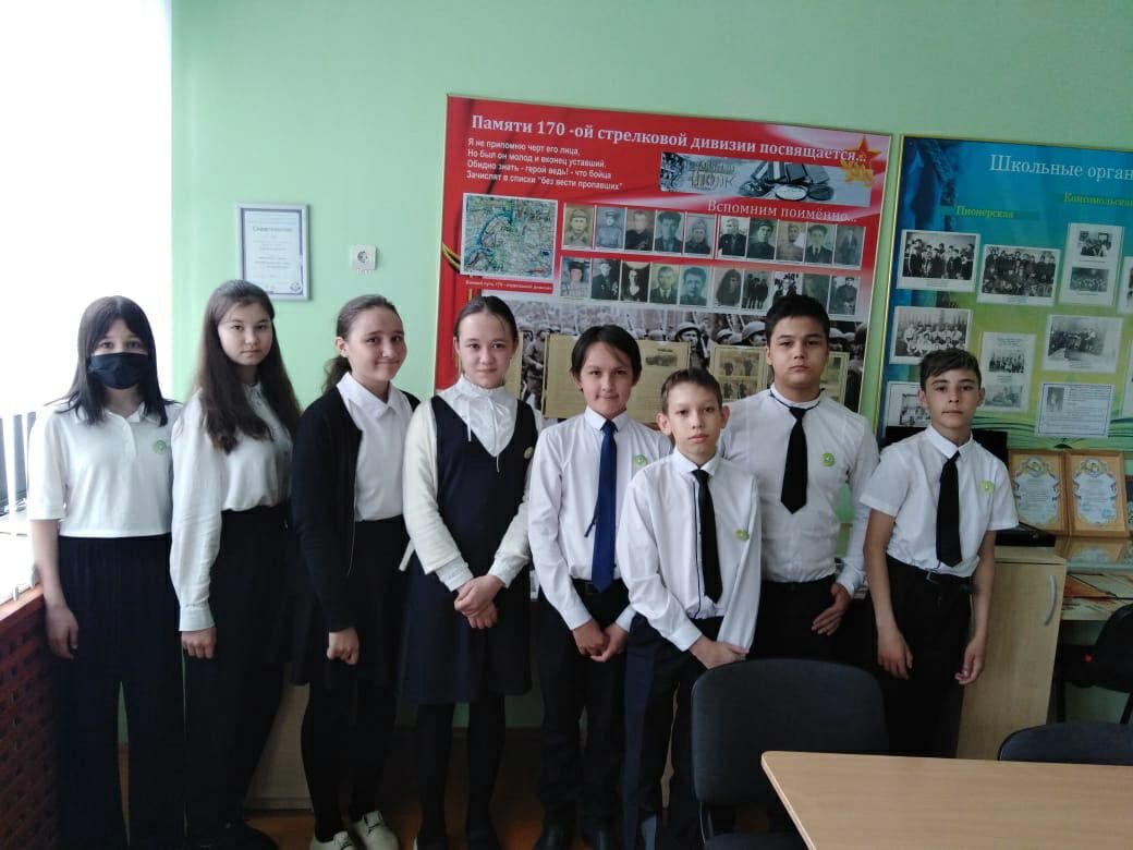5-6 мая в предверии праздника, учащиеся посетили школьный музей. Детям рассказывали о воинах 170-й стрелковой дивизии. Детей заинтересовали материалы папок, посвящённых 170 СД, которые были оформлены учениками учителями нашей школы.