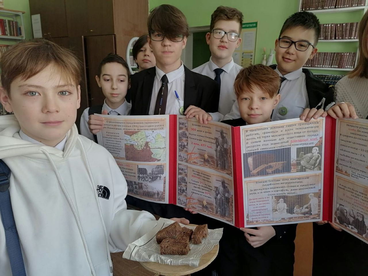 Ребята узнали, как выстоял блокадный город, что пришлось пережить мужественным ленинградцам. Особенным чувствами ребята прониклись к судьбе маленькой девочки Тани Савичевой. Её дневник стал одним из символов Великой Отечественной войны. Также ребята поучаствовали в акции "Блокадный хлеб", прослушали рассказ Галины Соколовой "Маленький кусочек хлеба" в исполнении Мурата Кусаинова.