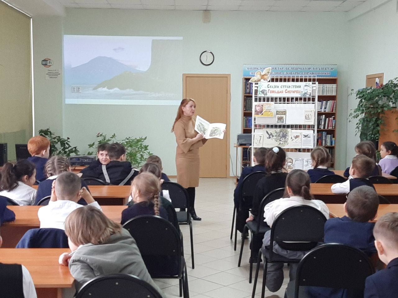 20 марта в нашей библиотеке для учеников 1 «Б» класса СОШ № 7 прошел литературный калейдоскоп «В гости к пернатым друзьям», посвященный 90-летию детского писателя Геннадия Яковлевича Снегирева. В начале мероприятия библиотекарь рассказала ребятам удивительную и необычную биографию Г. Снегирева. Дети узнали о том, что будущий писатель много путешествовал по просторам России и эти поездки нашли отражение в его книгах. Затем школьники послушали аудиокнигу по произведениям Г. Снегирева «Бобровая хатка» и «Пингвиний пляж». Также библиотекарь прочитала рассказ «Вальдшнеп» из книги «Про птиц». Юные читатели ответили на вопросы викторины «Пернатые друзья» и разгадали загадки про них. Литературный калейдоскоп завершили подвижной игрой «Добыча для пингвина» и из деталей собрали морскую птицу. К мероприятию была подготовлена книжная выставка «Сказки странствий Геннадия Снегирева».