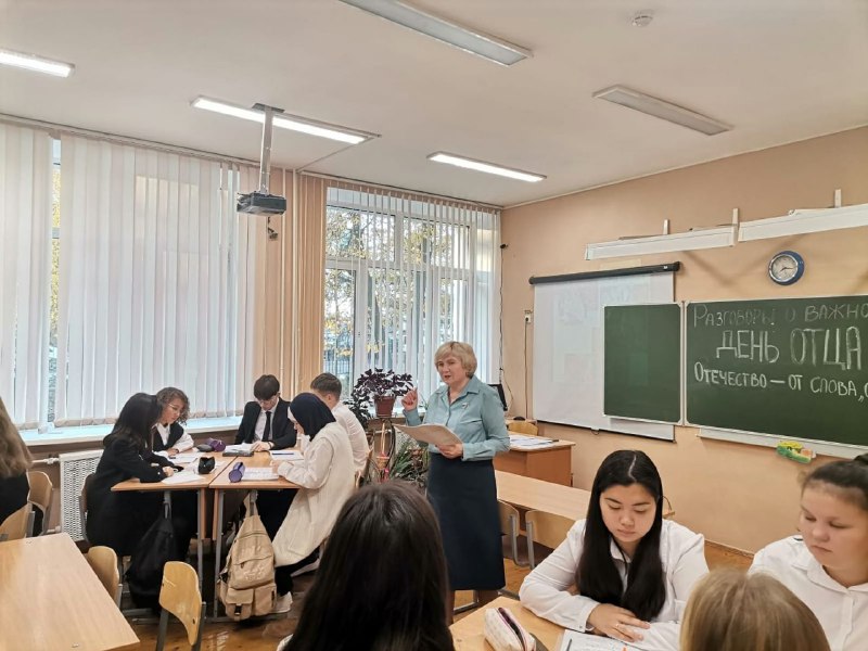 Приближается один из самых молодых для нашей многонациональной России праздников – День отца. Указом Президента Российской Федерации Владимира Владимировича Путина День отца отмечается в третье воскресенье октября, начиная с 2021 года. Празднику всего один год. Но история его возникновения уходит в далекое прошлое нашего государства, становится культурным достоянием современной семьи и ее традиций. Сегодня в Башкирской гимназии № 102 им. Р.Т.Бикбаева занятие «Разговоры о важном» было посвящено именно этой теме. И традиционно перед уроками состоялась торжественная церемония поднятия флагов Российской Федерации и Республики Башкортостан.
