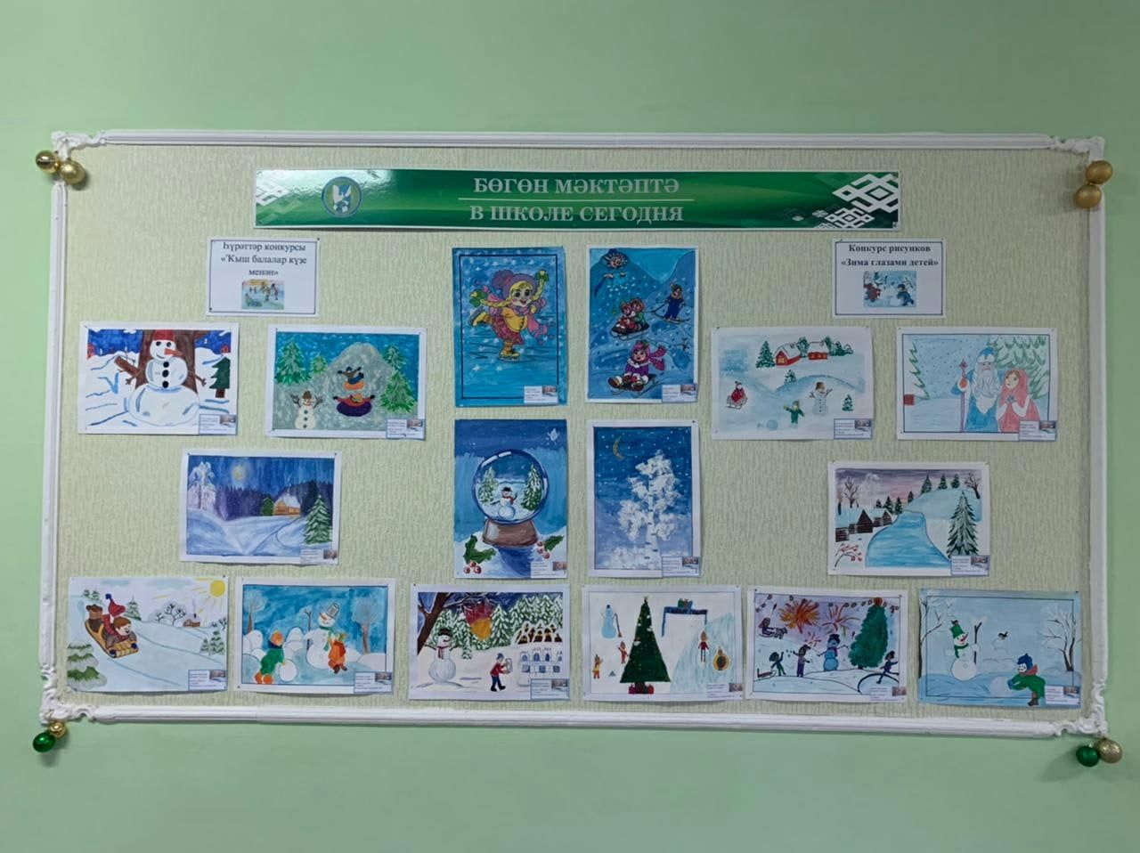 Учащиеся начальных классов приняли активное участие в школьном конкурсе рисунков "Зима глазами детей" .