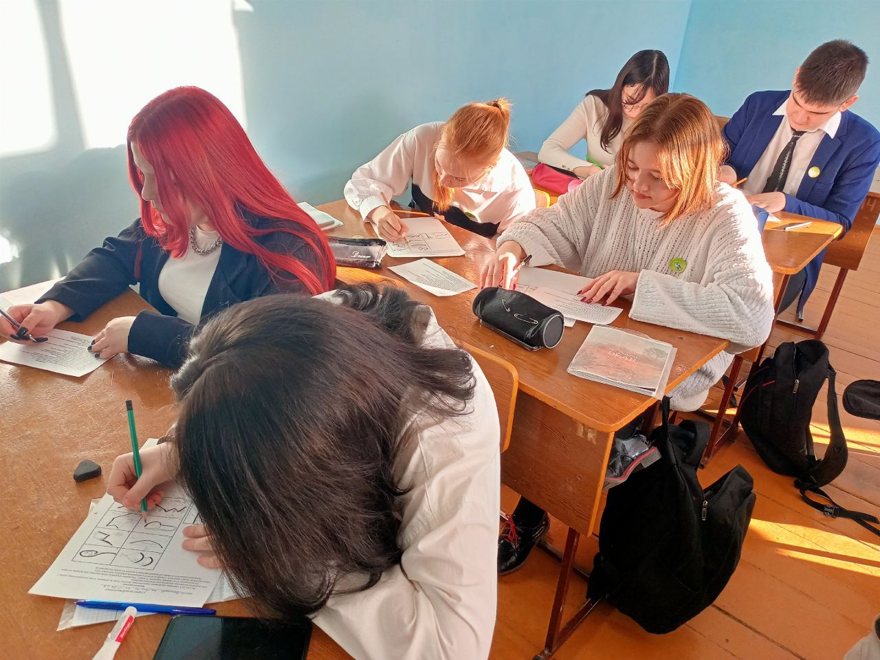 Психолог школы проводила занятие в 9б классе с целью отработки с учащимися навыков психологической подготовки к экзаменам, повышении их уверенности в себе, своих силах при сдаче экзаменов.