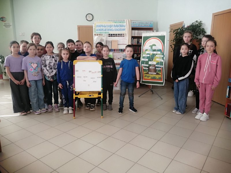 СОШ №4 в рамках подготовки и проведения народного праздника «Шежере байрам» прошел краеведческий экскурс «Да не прервется нить, связующая поколения». В ходе мероприятия школьники узнали об обычае у башкир составлять шежере, раскрыли понятия «семья», «род», «родословная» и обсудили особенности башкирской родословной. Вместе с библиотекарем изучили виды генеалогических таблиц, получили первоначальные рекомендации по составлению своей родословной и в процессе игры попробовали составить родословную.Школьники поучаствовали в конкурсах «Продолжи пословицу», «Назови степень родства», отгадывали ребусы о членах семьи. Затем юные читатели приняли активное участие в башкирских народных играх: «Самый быстрый наездник» и «Юрта». Была оформлена книжная выставка « Шежере- летопись поколений» При проведении мероприятия был использован материал электронного ресурса НЭБ (Национальной электронной библиотеки) Борвенко В.Г. «Моя родословная».