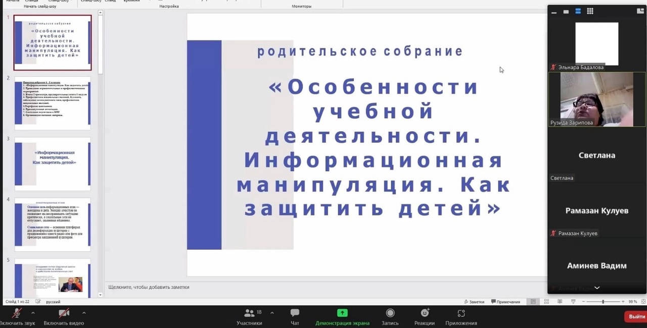 В МАОУ СОШ 7 г.Туймазы прошли тематические родительские собрания на тему: «Организация учебной деятельности. Информационная манипуляция. Как защитить детей».