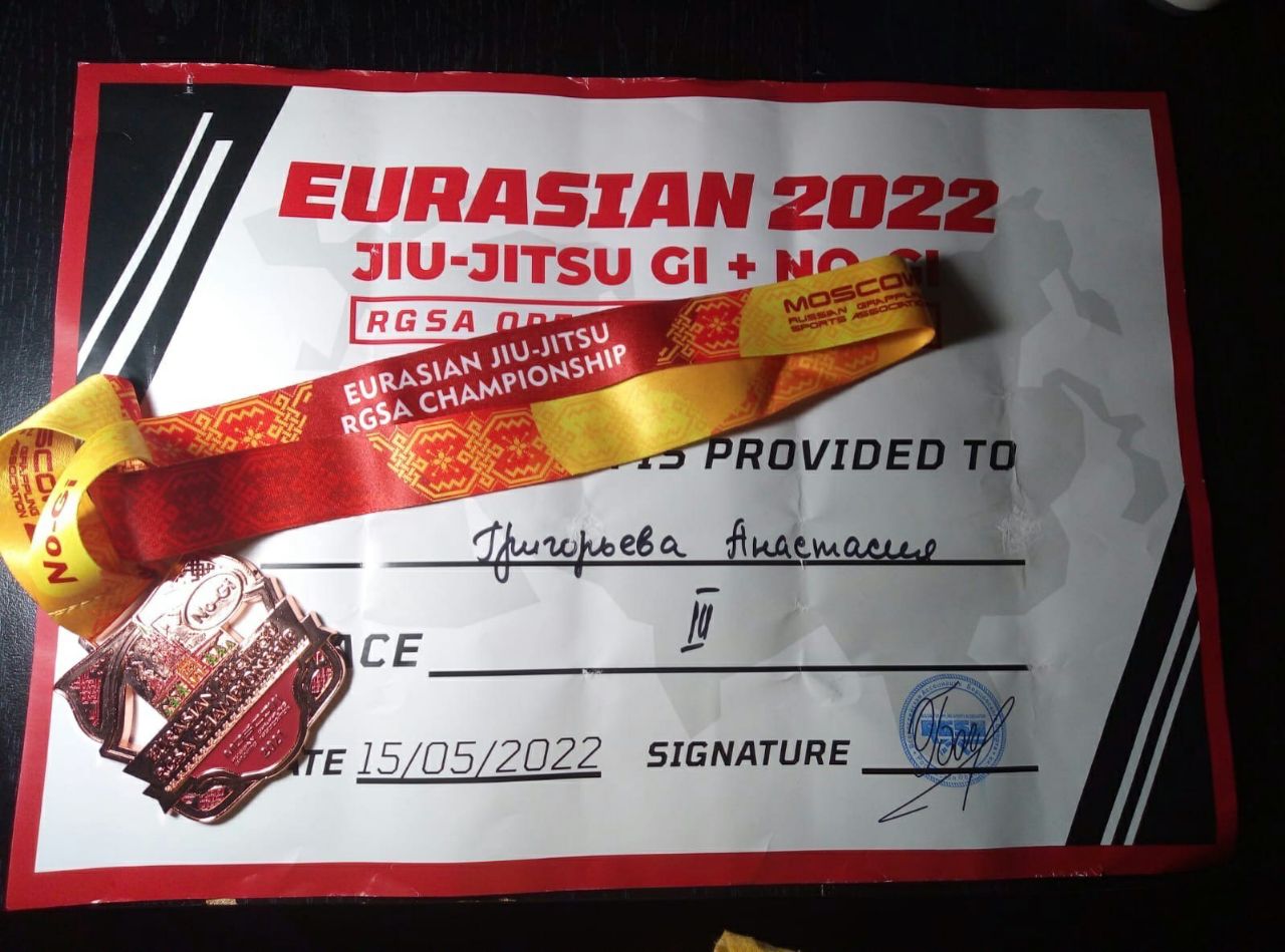 Ученица 6Б класса заняла 3 место в Открытом Чемпионате Евразии по Джиу-Джитсу, GI+NO-GI. 15 мая 2022 проходивший в Большой арене "МЦБИ", г. МОСКВА