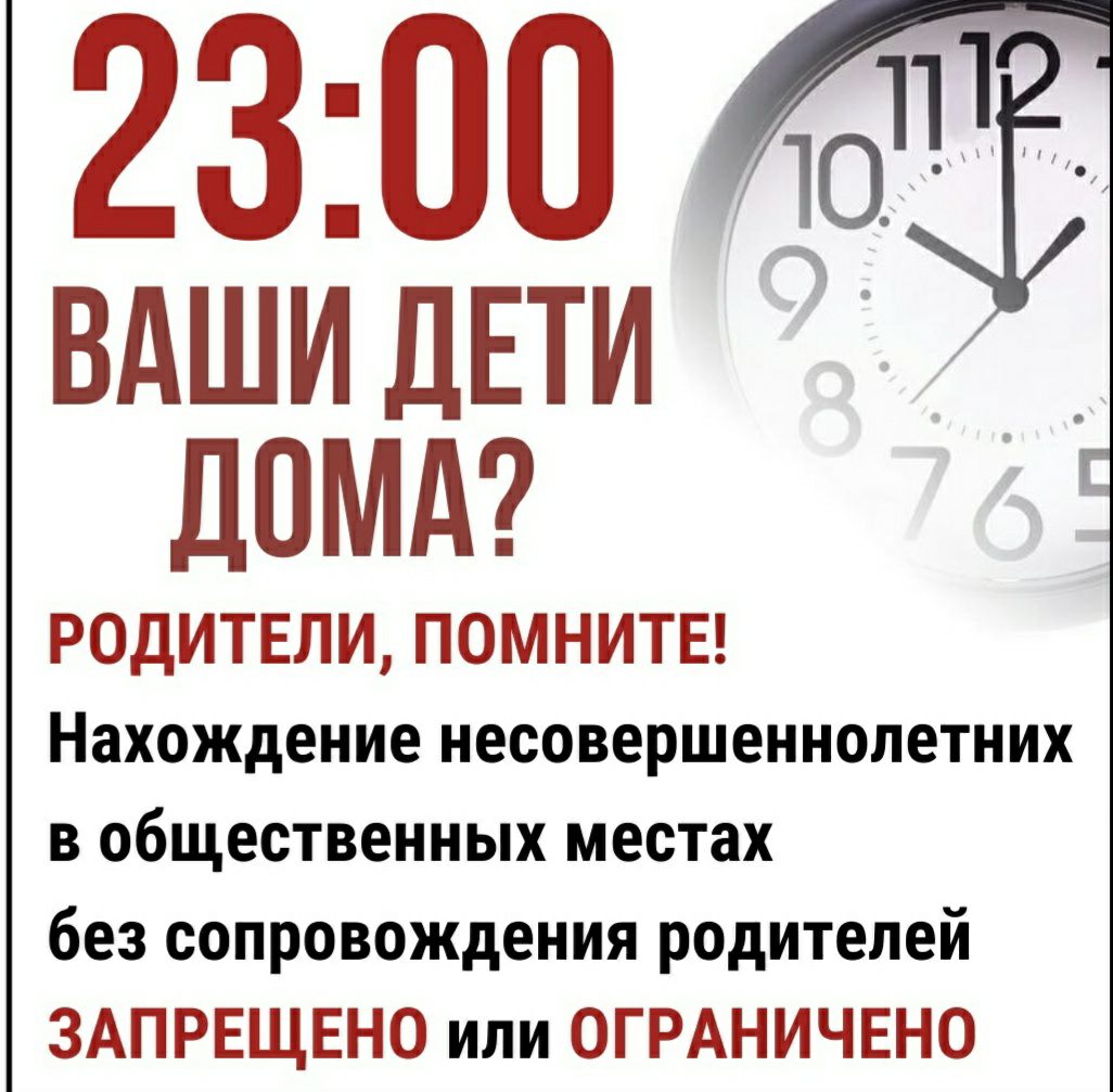 Согласно действующему законодательству, данной категории несовершеннолетних в это время полностью запрещено нахождение на улицах, стадионах, площади, детских и спортивных площадках, пляжах, скверах, дворах и местах общего пользования в многоквартирных домах, в общественном транспорте, территориях и помещениях вокзалов, речных портах, аэропортах, на кладбищах, в интернет-кафе без сопровождения законных представителей.