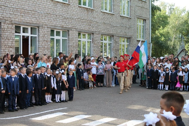 1 сентября - День знаний! Праздник книг, цветов, друзей, улыбок, света! Двери нашей школы вновь распахнулись, чтобы дать старт новому учебному году! Традиционно 1 сентября в нашей школе проводится торжественная линейка, посвящённая Дню Знаний. Нарядные ученики и ученицы 1 классов с пестрыми букетами цветов, учителя и родители заполнили школьный двор. Звучит музыка, и все классы строятся на школьном дворе. Все застыли на торжественной линейке под звуки марша и церемонии выноса флагов, гимна России и Республики Башкортостан. Всё наполнено торжеством и гордостью, что ты частичка этого действа, этого великого праздника Дня Знаний. Ведь знание каждого из нас – это будущее каждого из нас, это будущее страны. По традиции первыми представляют малышей-первоклассников, их в этом году 184. Директор школы Михеев Андрей Владимирович и гости поздравили учащихся школы с новым учебным годом, отметив, что учение - нелегкий, но радостный и увлекательный труд. Пусть новый учебный год станет для всех ярким и плодотворным, пусть будет наполнен творчеством, интересным и полезным общением, духовно, интеллектуально обогатит и ребят, и их педагогов. С ответным словом выступила группа малышей - первоклассников, которые с выражением прочли выученные стихи. Эстафету подхватили старшеклассники. Праздник 1 сентября всегда остаётся незабываемым, радостным и в тоже время волнующим. Хочется пожелать ученикам и учителям, чтобы не только 1сентября было радостным, но и все дни, проведённые в школе. Пусть новый учебный год станет для всех плодотворным и богатым на знания, открытия, творчество и достижения!
