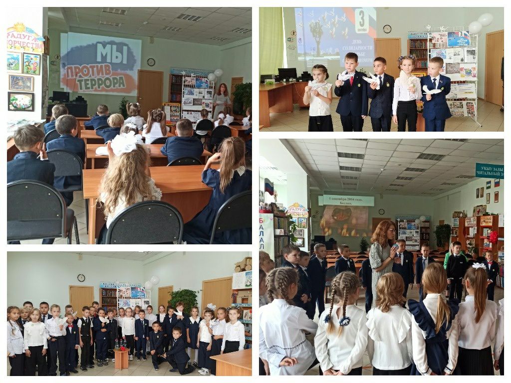2 сентября, в преддверии Дня солидарности в борьбе с терроризмом, в городской модельной библиотеке №4 для учащихся 2 «В» класса школы №7 прошла беседа-реквием «Там чьи-то взорваны мечты». Библиотекарь в сопровождении электронной презентации рассказала школьникам о трагических событиях, которые произошли с 1 по 3 сентября 2004 года в школе №1 г. Беслан Северной Осетии. Объяснила значение слов «террор», «терроризм», «террорист». Участвуя в игре «Чтобы не стать жертвой терроризма надо…» дети узнали о безопасном поведении в чрезвычайных ситуациях. В заключение услышали стихи, посвящённые этой трагедии, в прочтении своих одноклассников.
