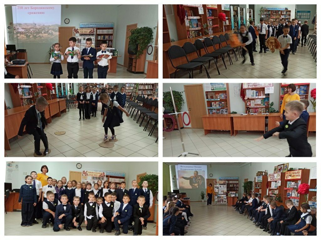 Сегодня сотрудники нашей библиотеки пригласили учащихся 2 Г класса школы №7 на литературно-исторический экскурс «Великое Бородино», ко Дню воинской славы России. Библиотекарь ознакомила юных читателей с историей Бородинского сражения. Ребята узнали и о мужестве башкирских конников, о том, как высоко оценил героизм и отвагу наших воинов фельдмаршал М.И.Кутузов - главнокомандующий русскими войсками. Школьники с интересом слушали про Маргариту Тучкову, благодаря которой был поставлен первый памятник героям Отечественной войны 1812 года. Именно М.Тучкова открыла сестрам монастыря секрет бородинского хлеба, которым долгое время поминали героев кровопролитного сражения.