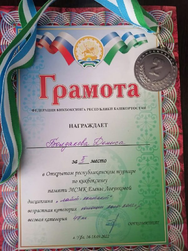 16-18 сентября в г.Уфа проходил открытый республиканский турнир по кикбоксингу памяти Мастера Спорта Международного Класса Елены Логунковой. Ученик 5 класса занял 2 место в дисциплине "лайт-контакт". Молодец! Школа Гордится Тобой!!!