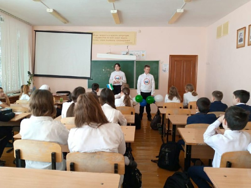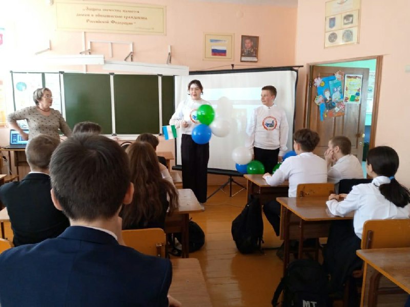 В День Республики Башкортостан ВО "Импульс" провел акцию "Мой край родной - Башкортостан". Цель акции: расширение кругозора, уважение и бережное отношение к истории, культуре родного края. Ребята волонтёрского отряда выступили перед учениками 6-8 классов, а также поздравили учителей, технический персонал и фельдшер школы с данным днём.