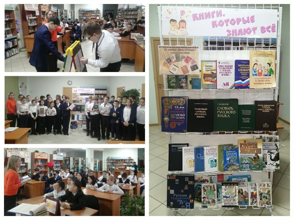 9 ноября в нашей библиотеке прошла познавательная игра «В них вся Вселенная живет», ко Дню словарей и энциклопедий (22 ноября) для учащихся 4 «Б» класса СОШ № 7. В начале мероприятия библиотекарь рассказала ребятам о том, что этот праздник приурочен ко дню рождения учёного, врача, писателя, этнографа, фольклориста, лексикографа, создателя «Толкового словаря живого великорусского языка» Владимира Ивановича Даля. Учащиеся узнали о его жизни и трудах, познакомились с многообразием словарей и энциклопедий. Также ребята узнали о правилах поиска информации в словарях и энциклопедиях. Затем, поделившись на команды «Эрудит» и «Грамотеи», школьники приняли активное участие в играх: «Все наоборот», «Найди пару», «Исправь ошибки», «Пройди препятствие».