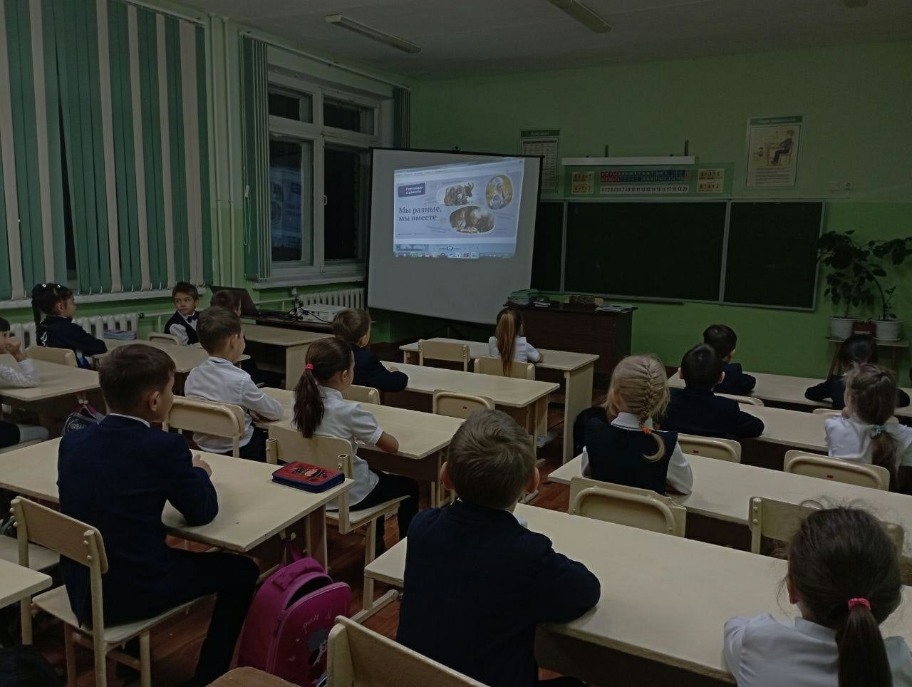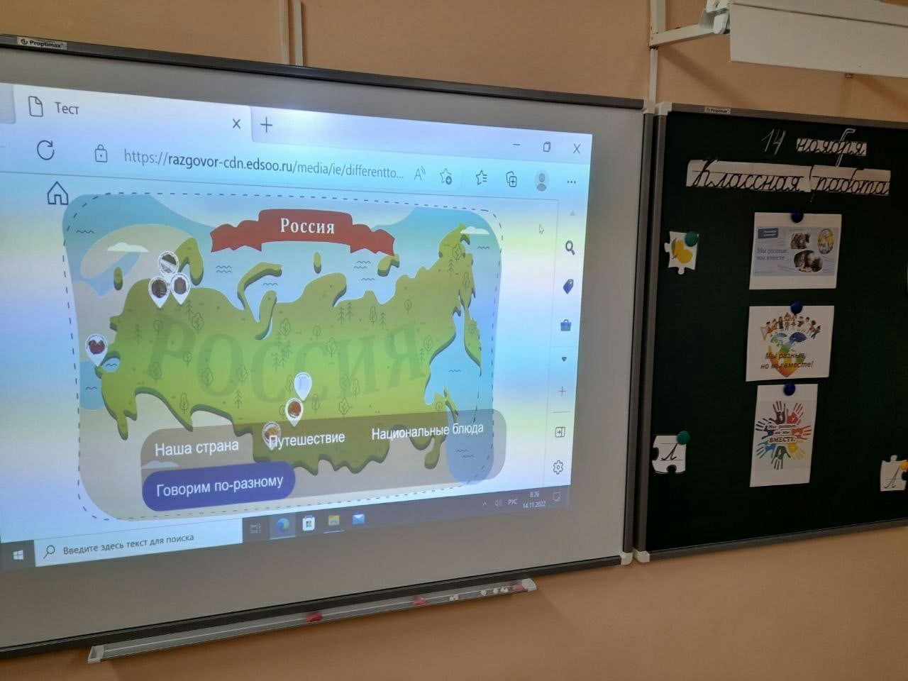 С 5 сентября В МАОУ СОШ 7 г.Туймазы каждый понедельник проходят внеурочные занятия «Разговор о важном». В этот же день школьники слушают гимн, а в школе торжественно поднимают флаг. Тема занятия, которое прошло 14 ноября, — «Мы разные, мы вместе». Классные руководители напомнили ребятам, что «наша страна — самая большая на планете» и это делает ее уникальной. Ребятам рассказали, что в России живут представители почти 200 народов и у каждого своя культура, обычаи и традиции и предложили отправиться в интерактивное путешествие. Народы России «объединяют духовно-нравственные ценности: человеколюбие и справедливость, воля и вера в добро, стремление к исполнению нравственного долга перед самим собой, своей семьей и своим отечеством, любовь к родному языку». Культура Российской Федерации является уникальным наследием ее многонационального народа, поэтому она поддерживается и охраняется государством. Больше узнать об особенностях каждого региона нашей страны можно, если посещать музеи и выставки, театры и концерты, ходить на экскурсии по родному краю. Картина нашей уникальной России — это картина нашей с вами жизни!