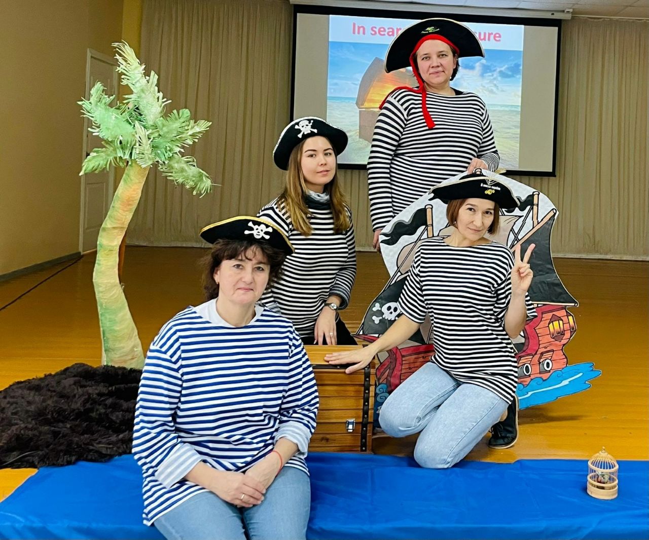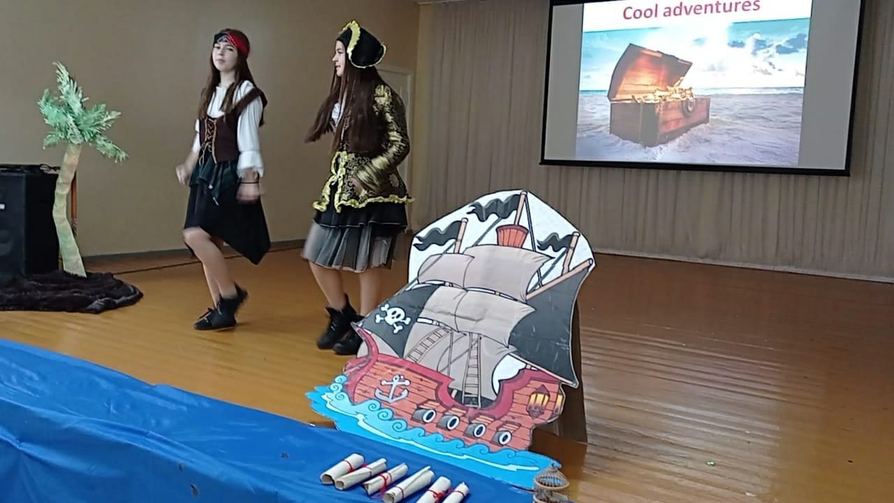В рамках декадника английского языка прошел квест для учащихся 8-х классов, составленный по мотивам фильма "Пираты Карибского моря". Учителя, переодетые в пиратов, встретили учащихся в фойе школы. Соответствующую ситуации атмосферу создавала задорная музыка. В ходе мероприятия участники, выполняя различные задания квеста, искали послание от пирата. На пути им встречались разные приключения: поиски сундука пиратов с золотыми монетами, состязания с привидениями, визит в подводное царство и т.д. Болельщики команд создали красочные проекты в поддержку своих команд. Мероприятие оставило у учащихся положительные эмоции.