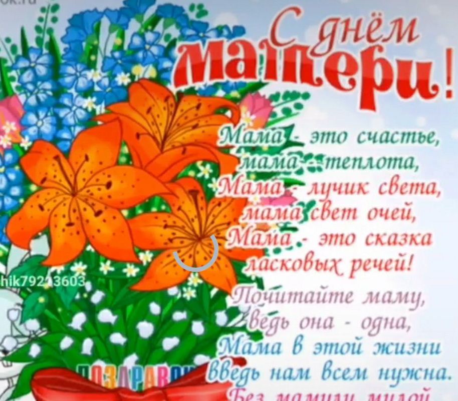 Мама – это первый человек, которого мы встречаем при рождении. Ее забота и теплота окружает нас в течение всей жизни, не важно сколько вам лет. Учащиеся 1а, 1б, 1в, 1г, 1д, 1е классов поздравляют вас с самым теплым, нежным и душевным праздником, с Днем матери! Пусть ваши сердца всегда будут наполнены светлым чувством любви, а глаза светятся чувством гордости за ваших детей. Ссылка на видео: