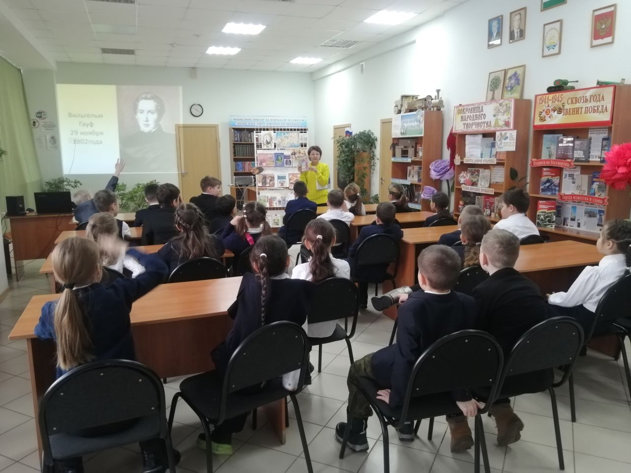 Сегодня в нашей библиотеке для учащихся 4 «Д» класса СОШ № 7 прошла литературная викторина «Волшебная страна сказок Гауфа», к 220 – летию немецкого писателя Вильгельма Гауфа. В ходе выступления библиотекаря ребята познакомились с творчеством известного сказочника. Прослушав аудиокниги по сказкам «Карлик Нос», «Маленький Мук» и обсудив вместе с библиотекарем поступки героев, окунулись в неповторимую атмосферу волшебства. С удовольствием ответили на вопросы интересной викторины, представленной на мультимедийной презентации «Великий сказочник». В конце мероприятия ознакомились с книжной выставкой «Караван сказок Гауфа».