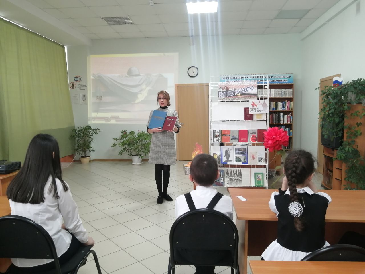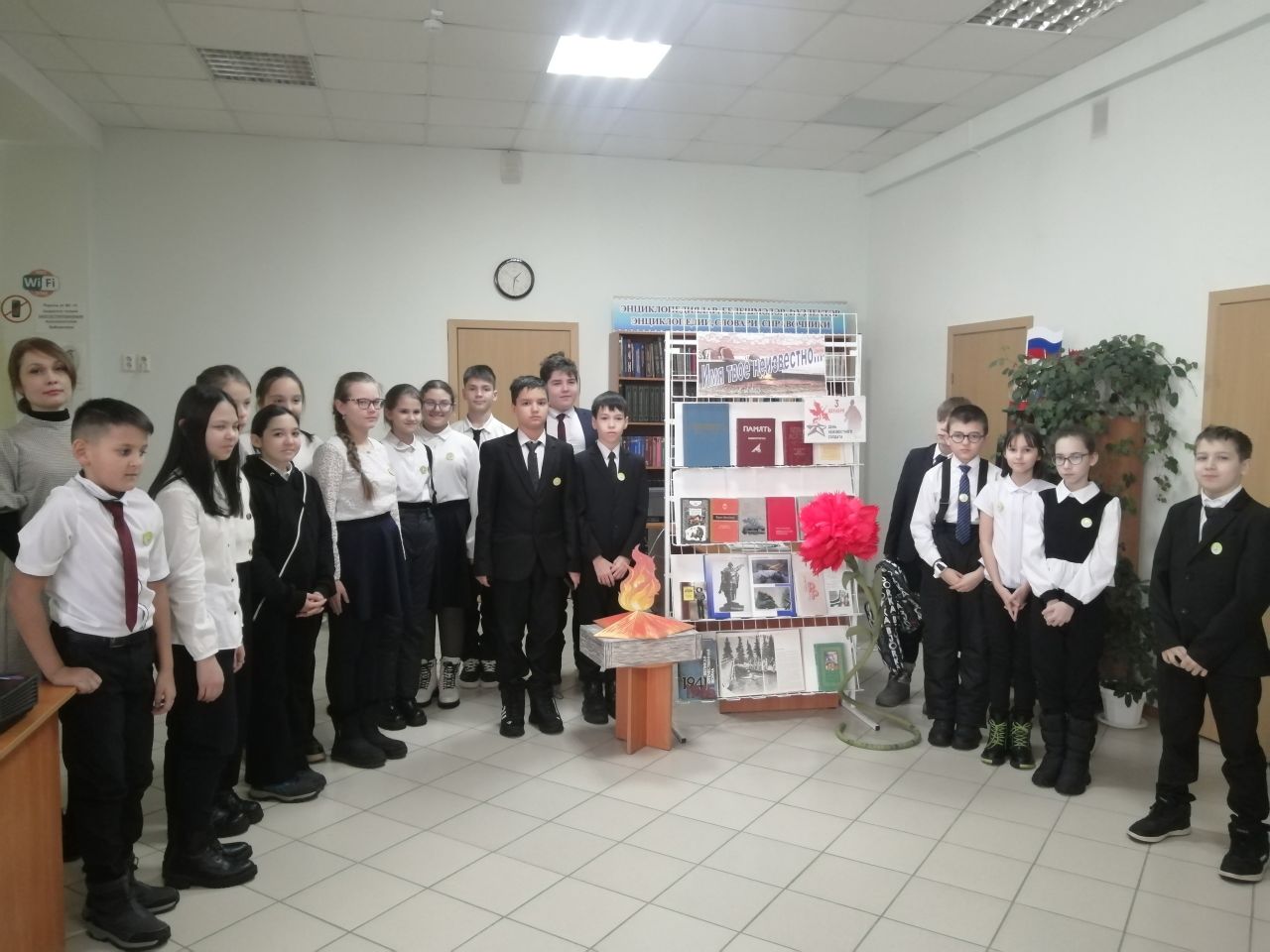 1 декабря сотрудники городской модельной библиотеки №4 пригласили учащихся 5 «Б» класса МАОУ СОШ №7 на военно-патриотический реквием «Нами твой подвиг, солдат, не забыт!», посвящённый Дню Неизвестного Солдата.