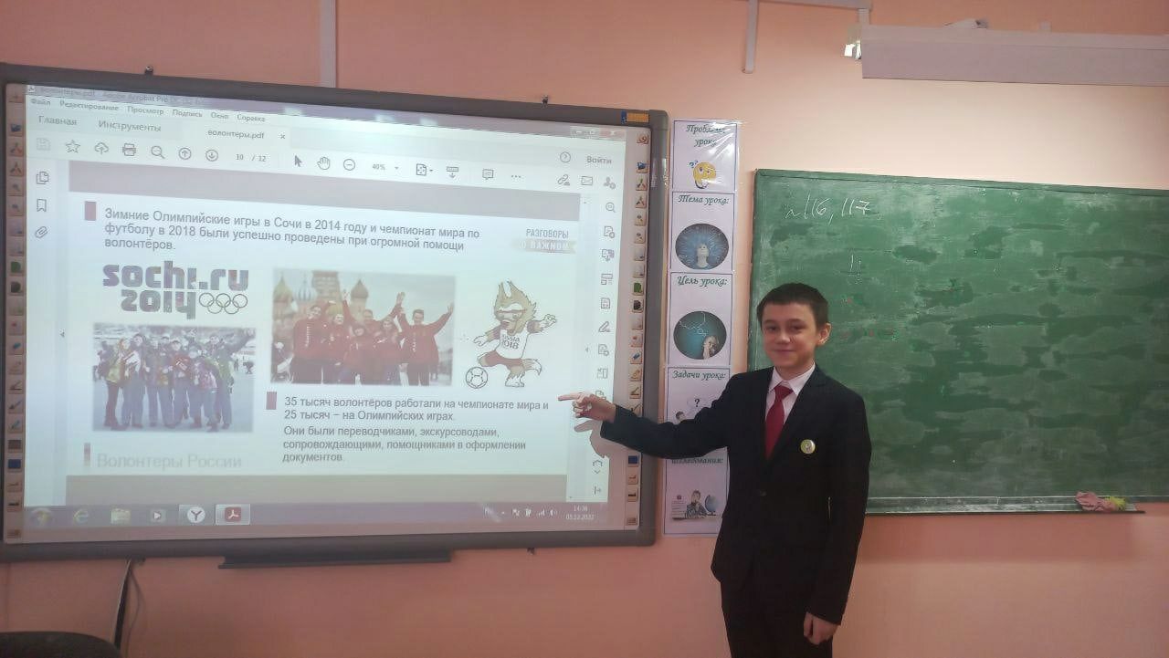 Классные руководители на этот раз провели Разговоры о важном в форме командного квиза «Волонтёры России» и беседы с элементами презентации, видеовключения, интерактивных заданий. Занятие внеурочной деятельности состояло из вступительного слова классного руководителя о Дне волонтёра. Ребятам было продемонстрировано интервью с К. Ю. Хабенским. Классные руководители формировали понимание, что каждый человек проявляет себя в деятельности и поступках, именно они характеризуют его как человека, как профессионала. При обсуждении видеоролика был проведён разговор о понимании того, что стимулирует человека к волонтёрской деятельности, что лежит в её основе.Подводя итоги занятия, классные руководители обратили внимание обучающихся на то, что о человеке судят по его поступкам. И сейчас ребята могут приносить пользу, совершать добрые поступки, заботиться о младших и пожилых людях, беречь природу. Педагоги подчеркнули, что от конкретных дел и действий мир вокруг нас становится лучше. Также было обращено внимание учащихся о деятельности волонтерской организации школы «Импульс».