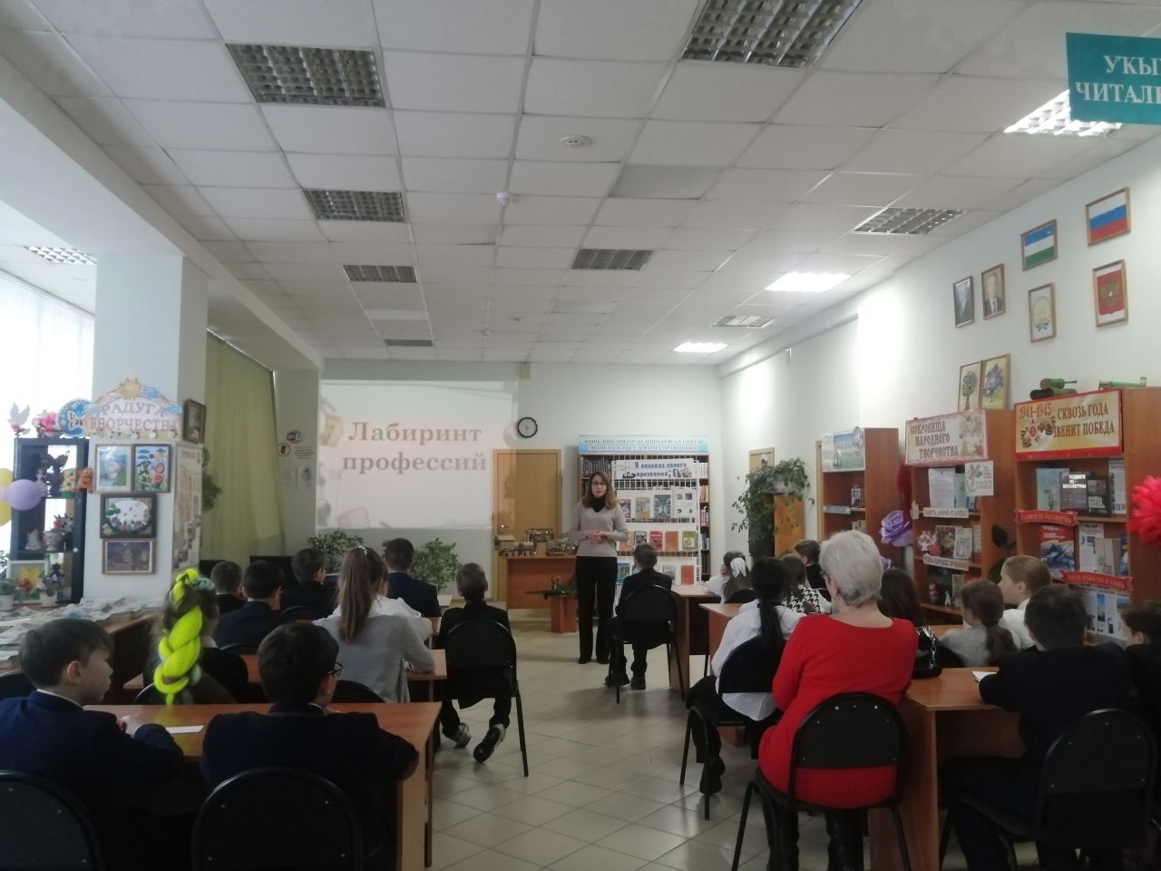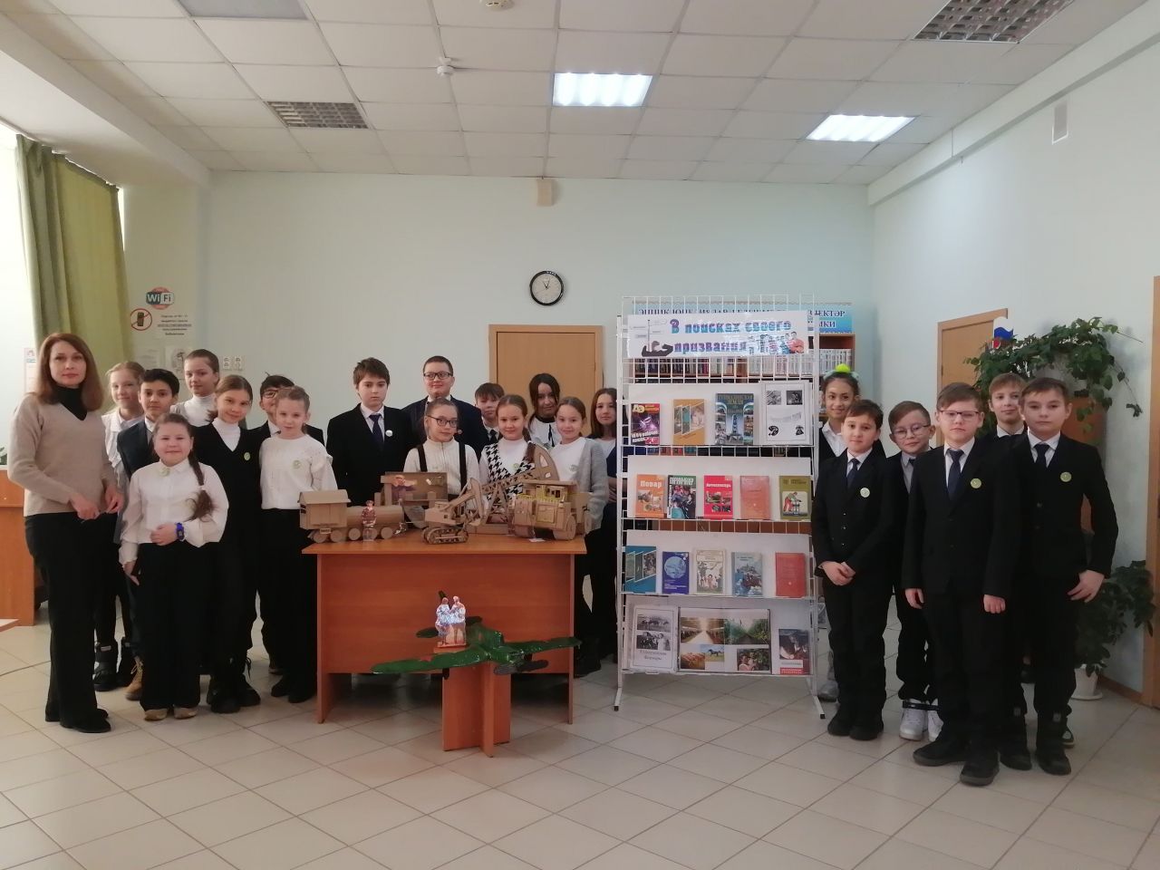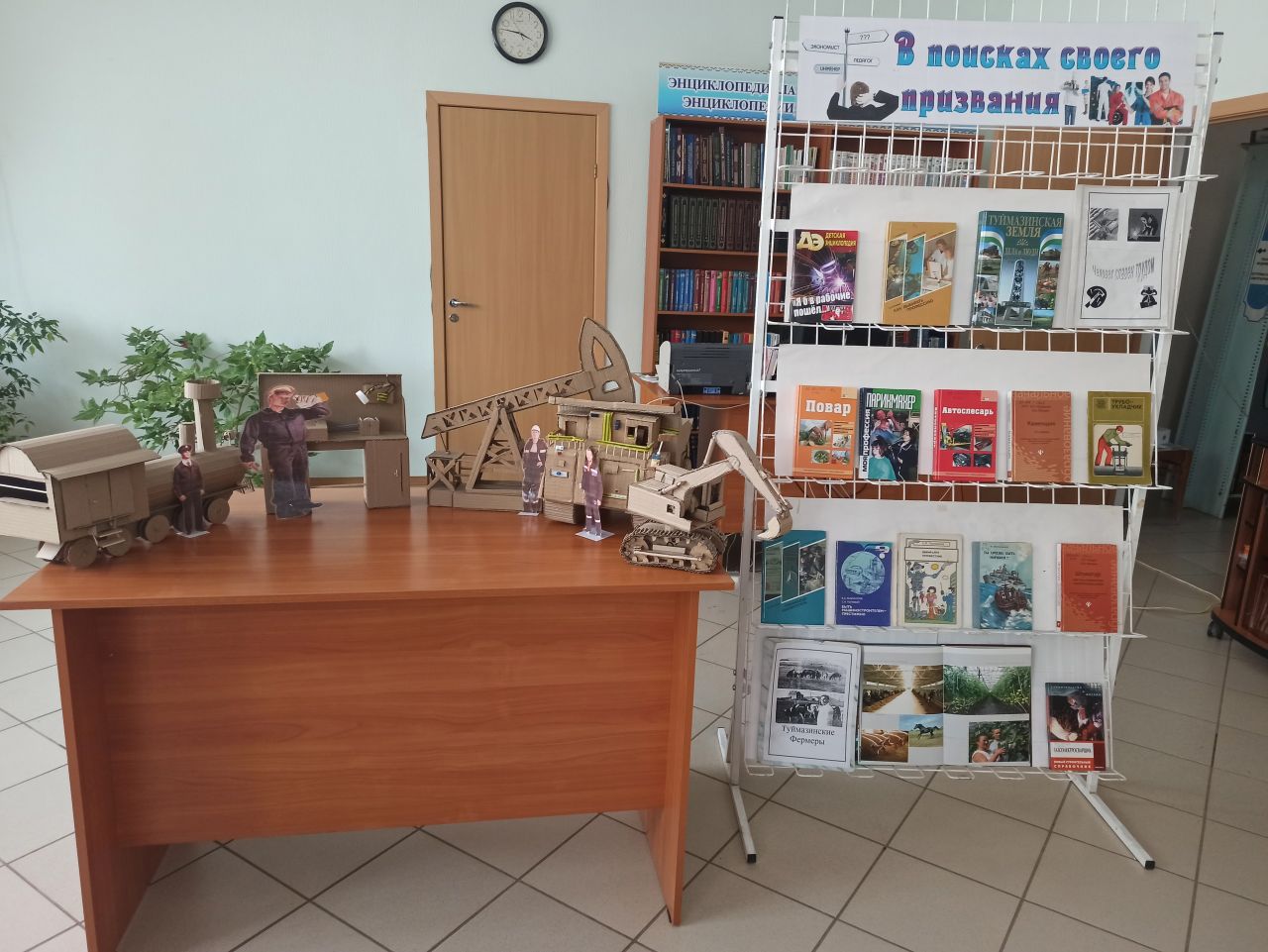 9 декабря в городской модельной библиотеке №4 в рамках Года модернизации профессионального образования достойных условий труда и трудовых династий в Республике Башкортостан, прошла квиз-игра «Лабиринт профессий». В командной игре приняли участие учащиеся 5 «В» класса СОШ №7. Соревнуясь, команды выполняли задания по следующим 5 уровням: «Человек-человек», «Человек-природа», «Человек – художественный образ», «Человек – техника», «Человек – знаковая система». В ходе игры школьники узнали о разновидностях профессий и типах, к которым они относятся. К мероприятию была подготовлена тематическая книжная выставка «В поисках своего призвания». Украсили выставку модели рабочего транспорта, сконструированного из упаковочного картона Мифтаховым Данилом, учащимся 6 «Е» класса СОШ №4, по которым участники игры отгадывали и называли профессии.