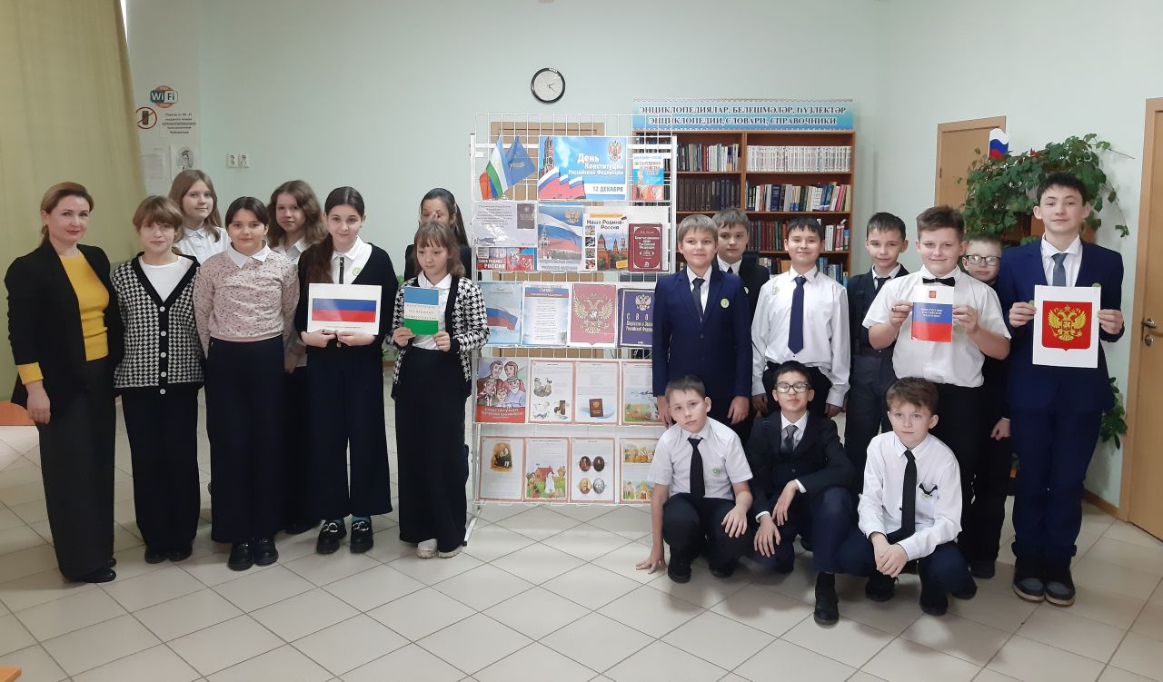 12 декабря в нашей библиотеке для учащихся 5 «Д» класса СОШ №7 прошла познавательная программа «Закон, по которому нам жить», приуроченная ко Дню Конституции Российской Федерации (12 декабря) и Республики Башкортостан (24 декабря). Мероприятие началось со звучания гимна Российской Федерации.