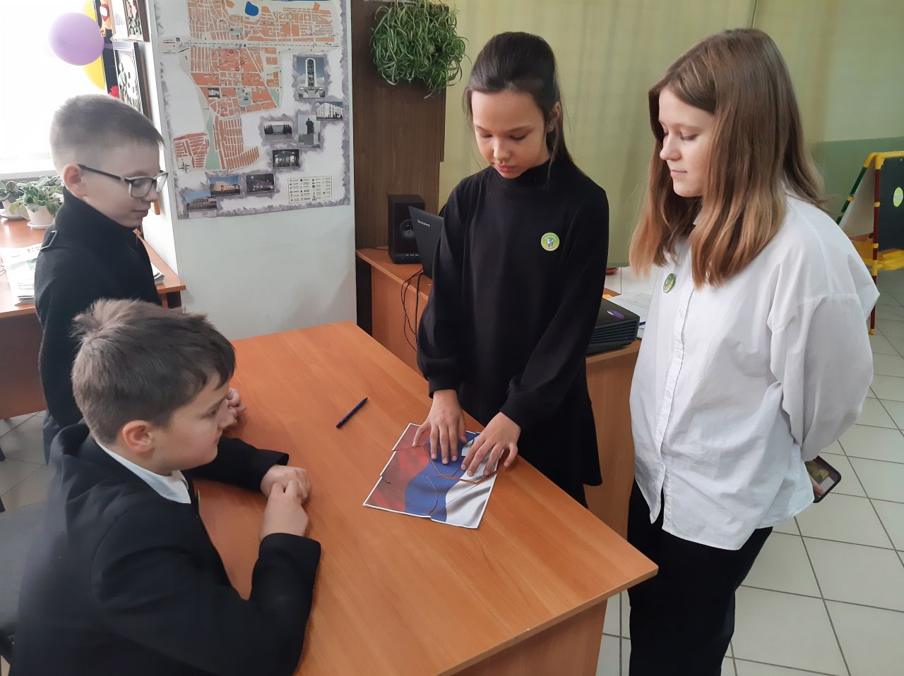 С помощью мультимедийной презентации библиотекарь познакомила юных читателей с историей создания Конституции, с её структурой, с правами и обязанностями граждан России. Затем учащиеся все дружно приняли участие в игре-разминке «Да! Нет!». Собрали пазлы с государственными символами РФ и РБ, поучаствовали в викторине «Конституция по сказкам». Выразительно прочитали стихотворения о России. В завершении мероприятия ребята собрали ромашки из лепестков «Права и обязанности детей». К мероприятию была оформлена книжная выставка «12 декабря -День Конституции РФ».