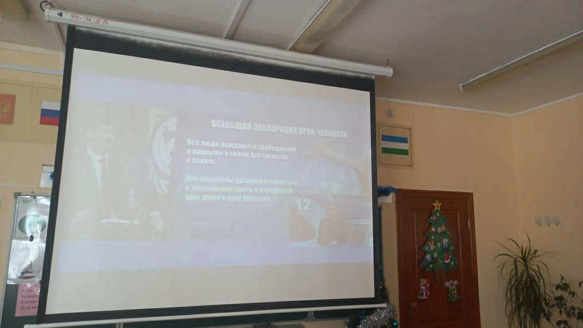 12 декабря учащиеся МАОУ СОШ 7 г.Туймазы приняли участие во Всероссийском едином уроке "Права человека". Урок провела Уполномоченный по правам человека в России Т.Н. Москалькова. Она рассказала об основных правах человека и общечеловеческих ценностях, объяснила учащимся, как важно знать свои права и обязанности и уметь их защищать. Учащиеся также узнали об истории возникновения института омбудсмена и основных направлениях деятельности государственного правозащитника.