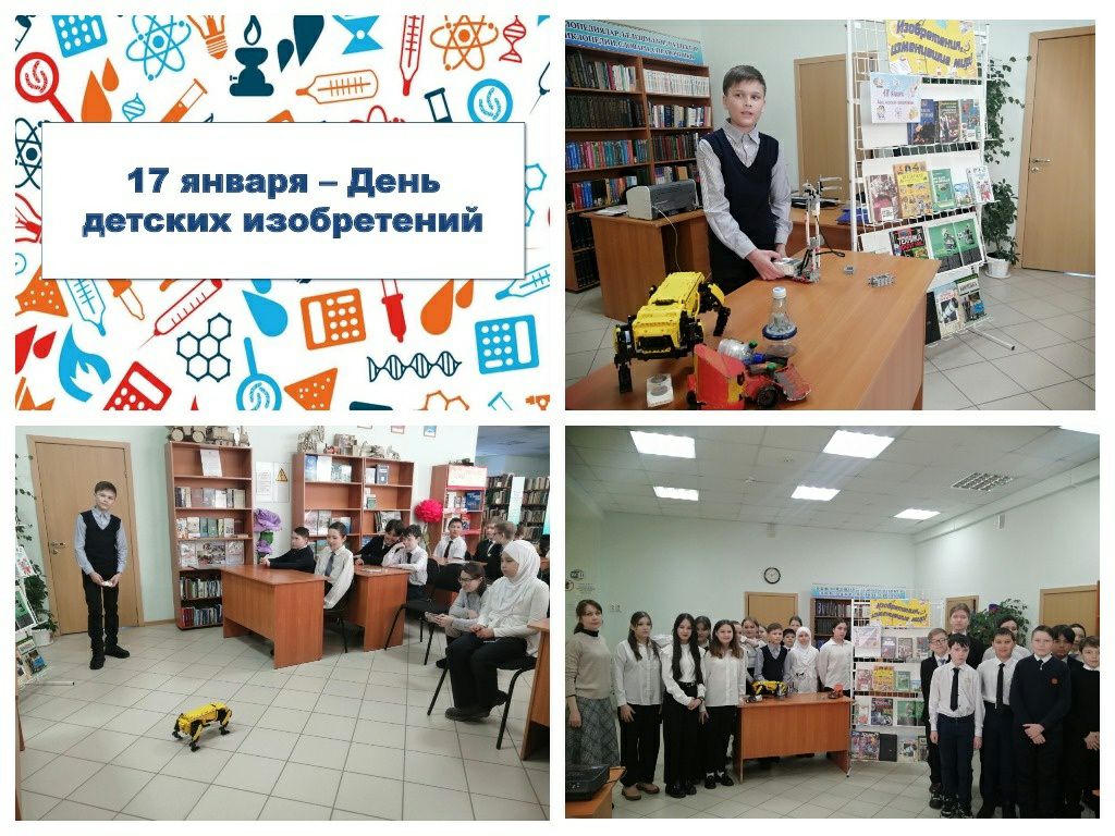 Сегодня в городской модельной библиотеке №4 рамках Дня детских изобретений для учащихся 6 «Г» класса СОШ №7 прошла познавательная программа «Мы - изобретатели». Библиотекарь в сопровождении мультимедийной презентации рассказала ребятам, что датой знаменательного дня был выбран день рождение выдающегося американского учёного, изобретателя, государственного деятеля Бенджамина Франклина, который первое своё изобретение – ласты для рук, придумал в 12 лет. Дети также узнали, кем и когда были изобретены водные лыжи, меховые наушники, фруктовое мороженое.С интересом посмотрели видео, где учащийся 9 «Г» класса школы №7 Самат Шакиров показывает моделей роботов, которые сам запрограммировал и сконструировал на кружке «Робототехника для детей в г. Туймазы» (ООО "АГАД-Проект", руководитель – А. Ш. Гиниятуллин). А ученик 6 «Е» класса СОШ №4 Данил Мифтахов продемонстрировал изобретённые им походный миксер, дорожный пылесос, бытового робота-снегоуборщика. Помимо этого, шестиклассники увидели, как работает манипулятор, сконструированный Данилом на кружке по робототехнике. В завершение посмотрели познавательный видеоролик «Изобретения детей». К мероприятию была подготовлена книжная выставка «Изобретения, изменившие мир».