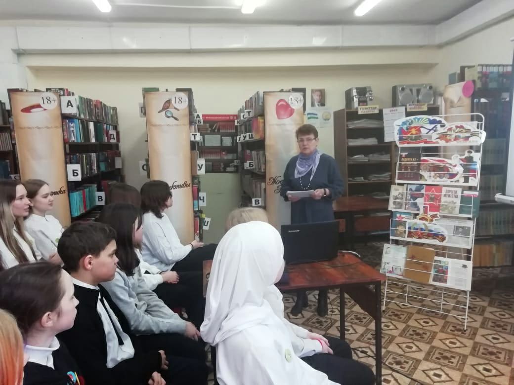 На свете есть много профессий. Но есть одна особенная - Родину защищать.Защищать Родину - это священный долг каждого. Проходят годы, века, а в памяти людей остаются те, кто когда-то героически отстаивал свободу своей страны. Независимо от должности, звания этих людей ими гордятся и уважают, потомки помнят их дела и подвиги. Сегодня учащиеся 7 класса МАОУ СОШ №7 г.Туймазы посетители городскую библиотеку №5. Библиотекари подготовили мероприятие, "Есть такая профессия - Родину защищать!" Ребята познакомились с военной историей России, её героическим прошлым и настоящим. Учащиеся посмотрели отрывки из фильма "Офицеры", вспомнили страницы истории о подвигах Александра Матросова, Зои Космодемьянской, о героях нашего времени. Особое внимание было уделено Вооружённым силам Российской Федерации, какие существуют виды и рода войск Вооружённых сил РФ, в чем заключается их назначение. В конце мероприятия ребята ответили на вопросы викторины.