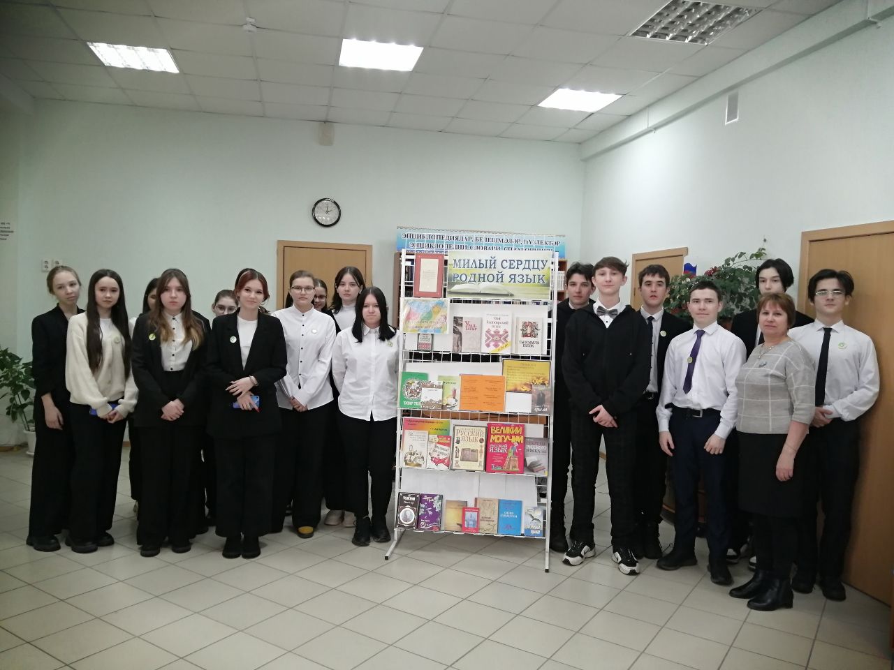 21 февраля в нашей библиотеке для учащихся 9 «А» класса СОШ №7 прошла литературно-краеведческая гостиная «Стихи и проза, сказки и преданья - все мило нам на языке родном!», к Международному дню родного языка. Библиотекарь вкратце рассказала об истории происхождения праздника и о его значимости для всего мира. Далее учащиеся прочли стихи о родной речи на русском, башкирском и татарском языках известных поэтов - Рами Гарипова, Габдуллы Тукая, Зайнаб Биишевой и посмотрели видеоролик «Родной язык начинается с семьи». Также старшеклассники отгадывали фразеологические загадки, вспомнили пословицы и крылатые выражения про родной язык. К мероприятию была оформлена книжная выставка «Милый сердцу родной язык..».