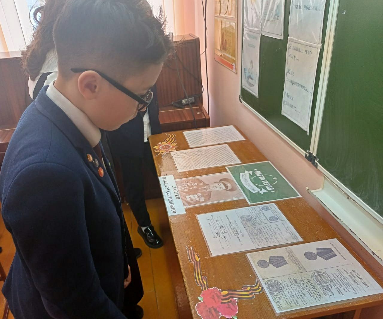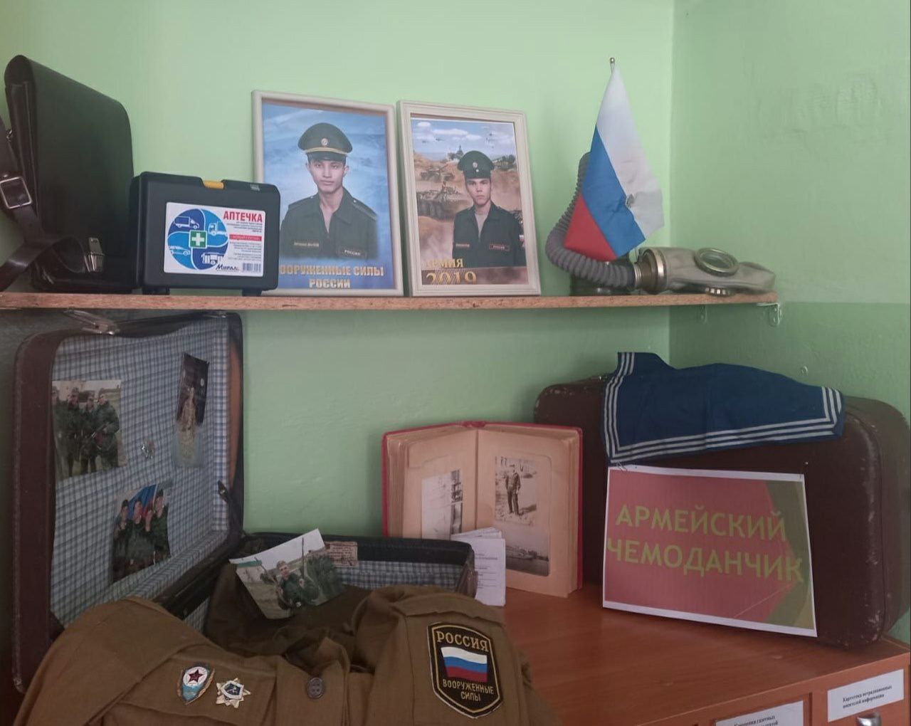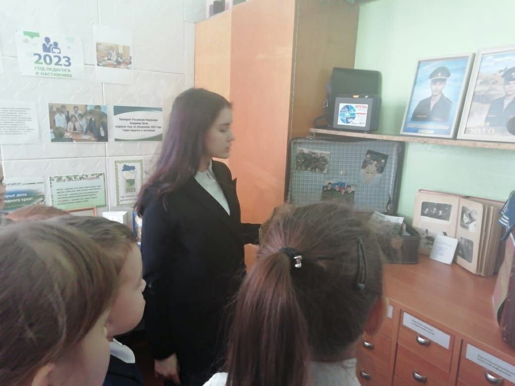 В преддверии Дня защитника Отечества учащиеся 8-9 классов второго корпуса нашей школы присоединились к акции «Армейский чемоданчик». В рамках акции учащиеся принесли различные предметы армейского быта (форму, головные уборы, жетоны и значки, фотографии и альбомы, письма, фляжки и проч.) и разместили их в чемоданы. Все эти предметы имеют свою историю и огромное значение для тех, кто защищал нашу Родину. Одним из самых интересных экспонатов оказались дембельские альбомы, ребята с удовольствием их рассматривали. Активы 8-9 классов провели для учащихся начальных классов ознакомительную беседу и рассказали об армейской службе своих родственников: пап, дедушек, старших братьев. В рамках декадника, посвященного Дню защитника Отечества, открыта Парта героя и оформлен стенд, где разместили фото выпускников, участников СВО.