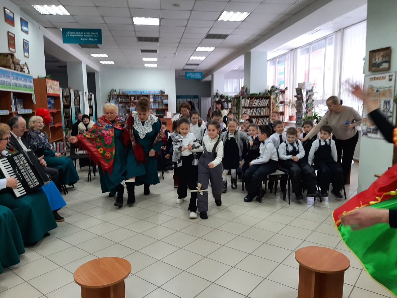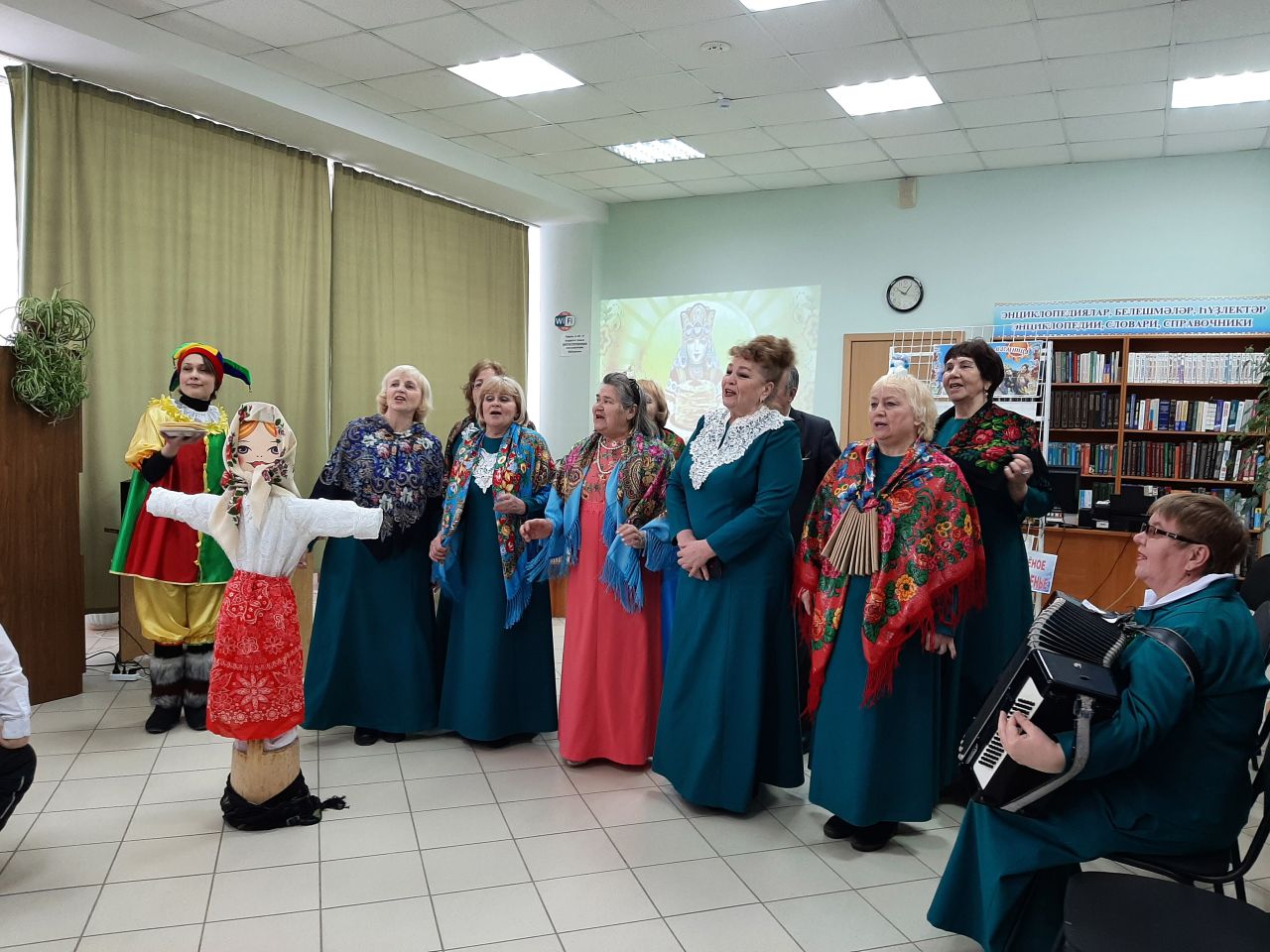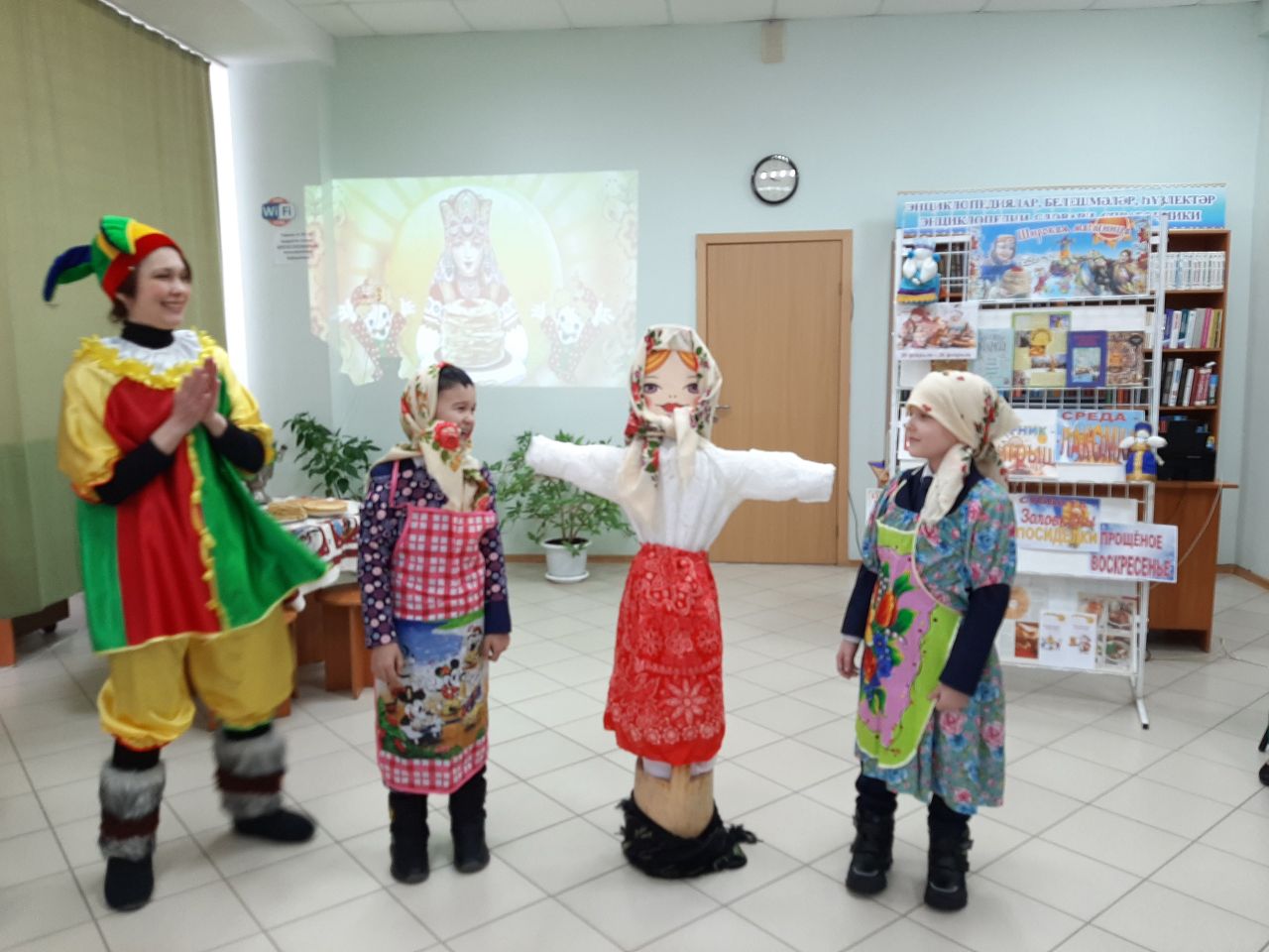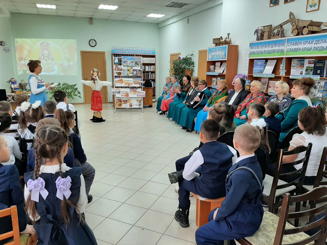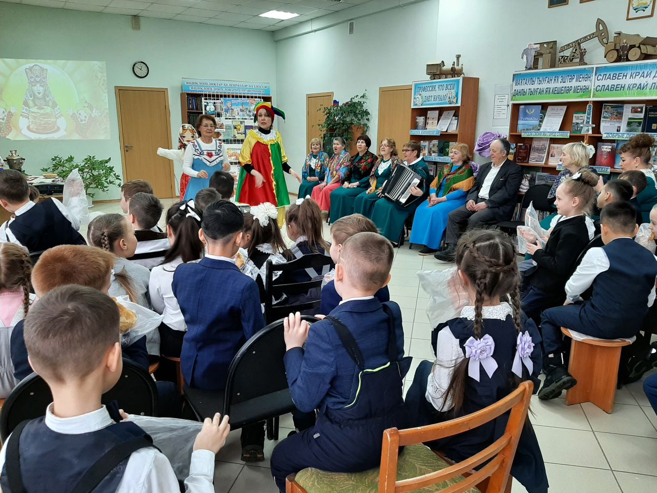 22 февраля в городской модельной библиотеке №4 для учащихся 1 «А» класса МАОУ СОШ №7 в рамках Масленичной недели была организована фольклорная карусель «Масленица идёт, за собой весну ведёт». Ведущая мероприятия Людмила Минлигалина и Петрушка (Гулия Ганеева) предложили вниманию маленьких читателей театрализованное представление, в котором показали, как в старину на Руси праздновали Масленицу. Первоклассники узнали о днях Масленичной недели. Вместе с Петрушкой поиграли в игры «Трехногий жеребец», «Наряди Масленицу». Послушали весёлые частушки, песни, которые исполнил народный коллектив - хор ветеранов «Живая история». Водили праздничный хоровод с участниками коллектива.