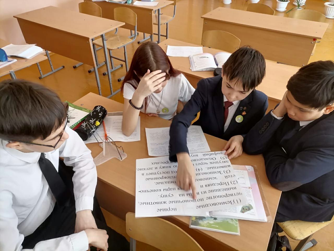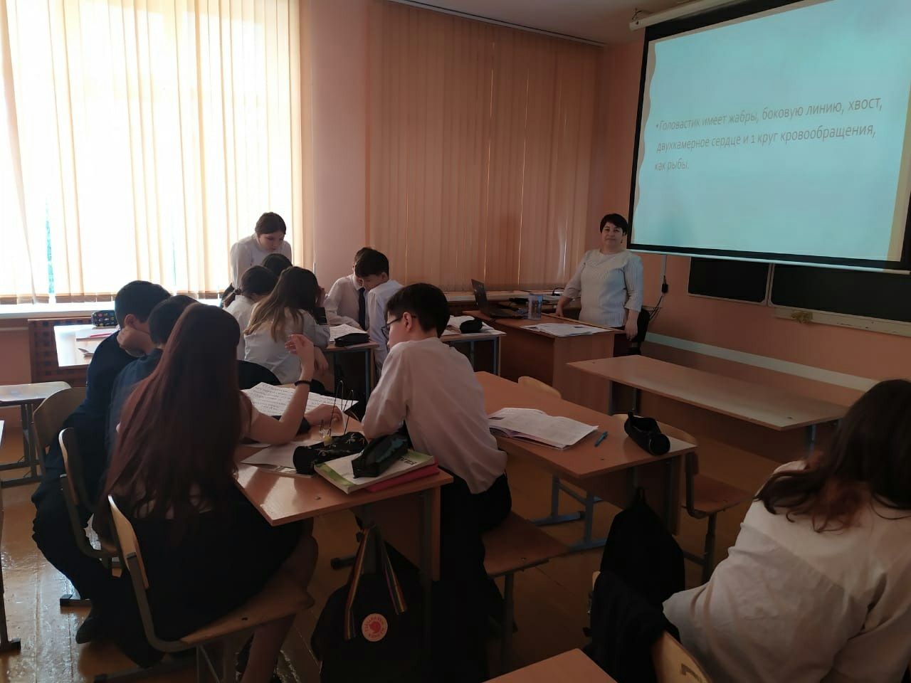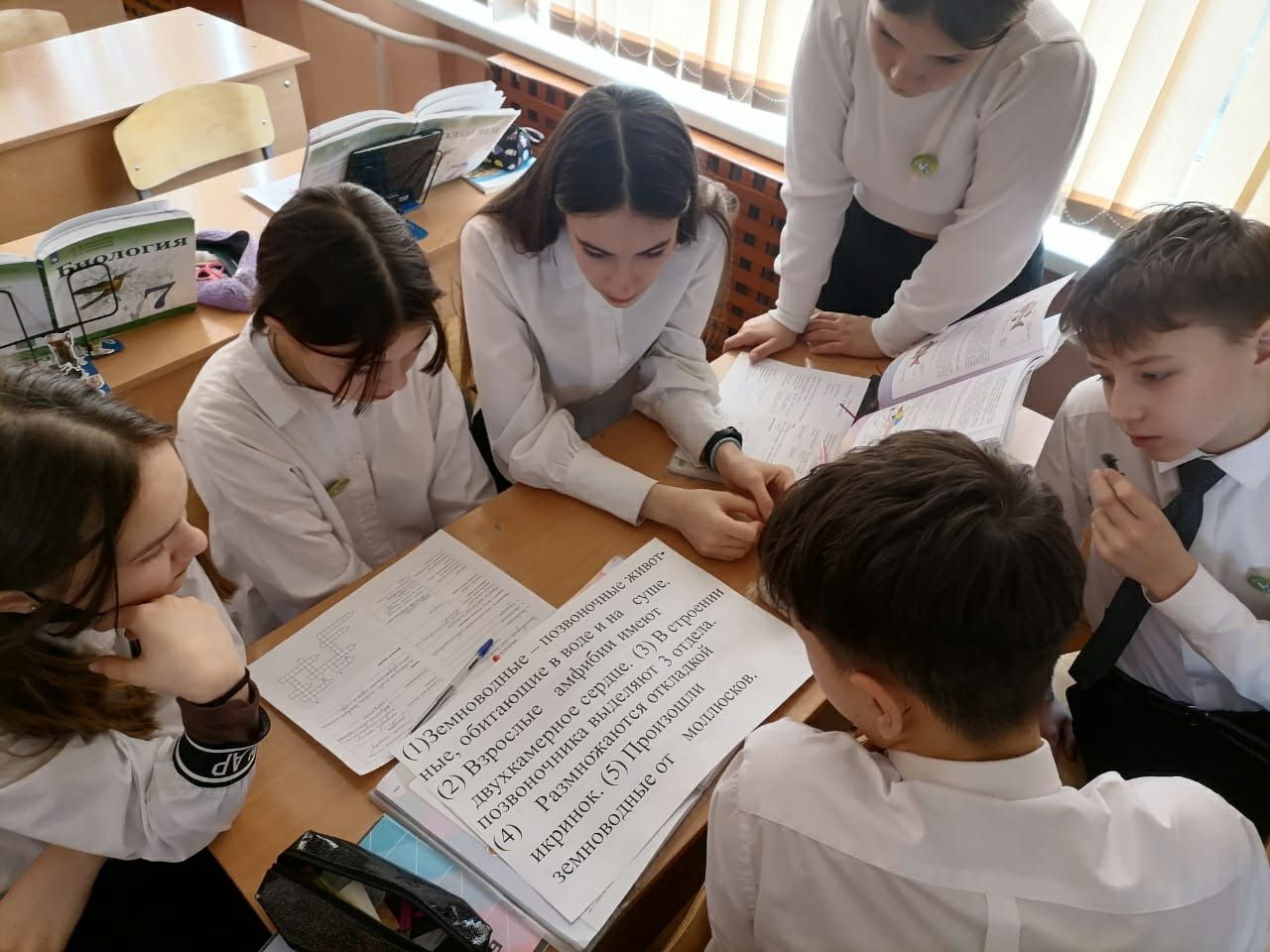 На уроке по теме "Амфибии" учащиеся 7г класса узнали об особенностях строения земноводных в связи с переходом от водной среды обитания к наземно-воздушной, просмотрели видеофрагмент о схожести головастика с рыбами, что служит доказательством происхождения амфибий от рыб, также определили значение земноводных в природе и жизни человека.