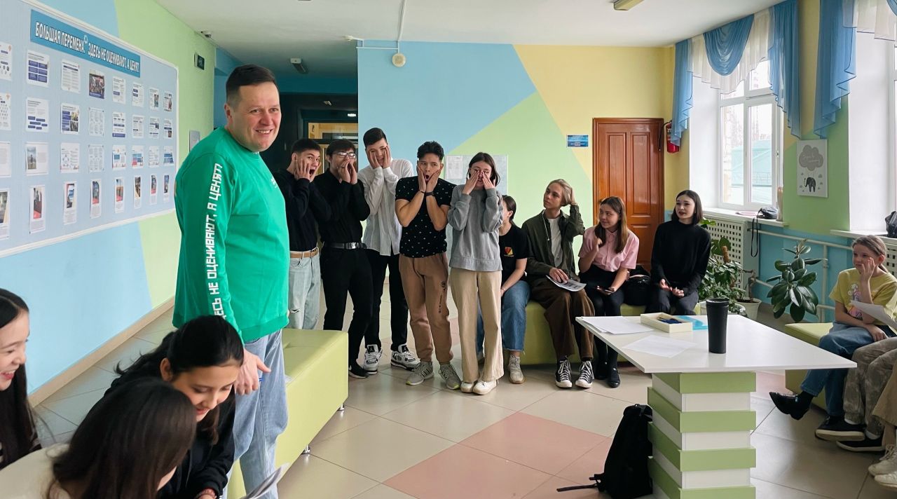 Сегодня, 18 марта, прошло собрание Клуба Большая Перемена «Шанс» Занятие начал руководитель клуба Большая Перемена «Шанс», Михеев Андрей Владимирович, который провел с участниками клуба игру «Пойми меня», направленную на понимание своих эмоций и эмоций других людей. Также ребята играли в игры на сплочение коллектива и построение командного взаимодействия.